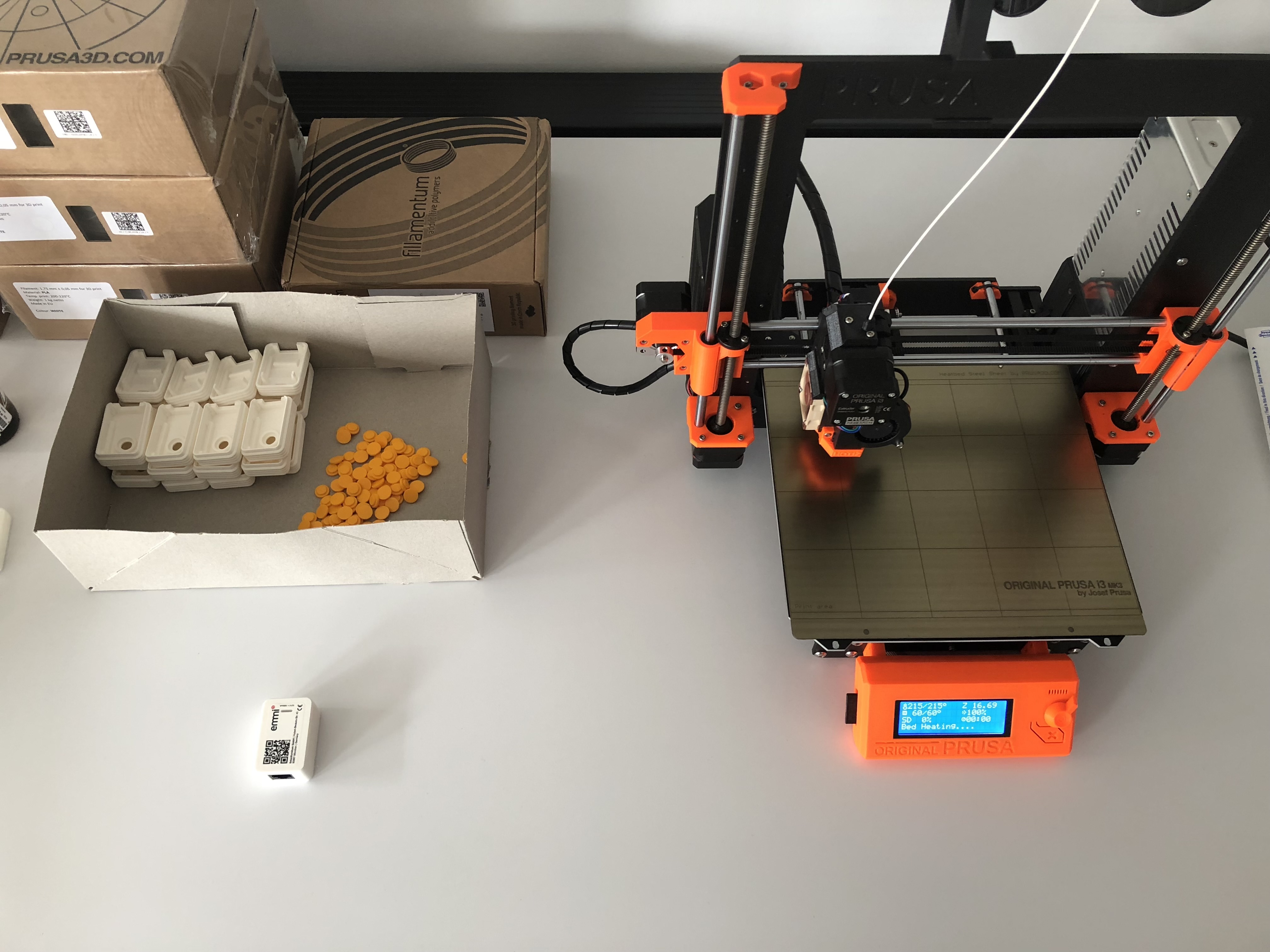 Gedruckt auf zwei Prusa Druckern, die nach 6 Jahren immer noch problemlos funktionieren.