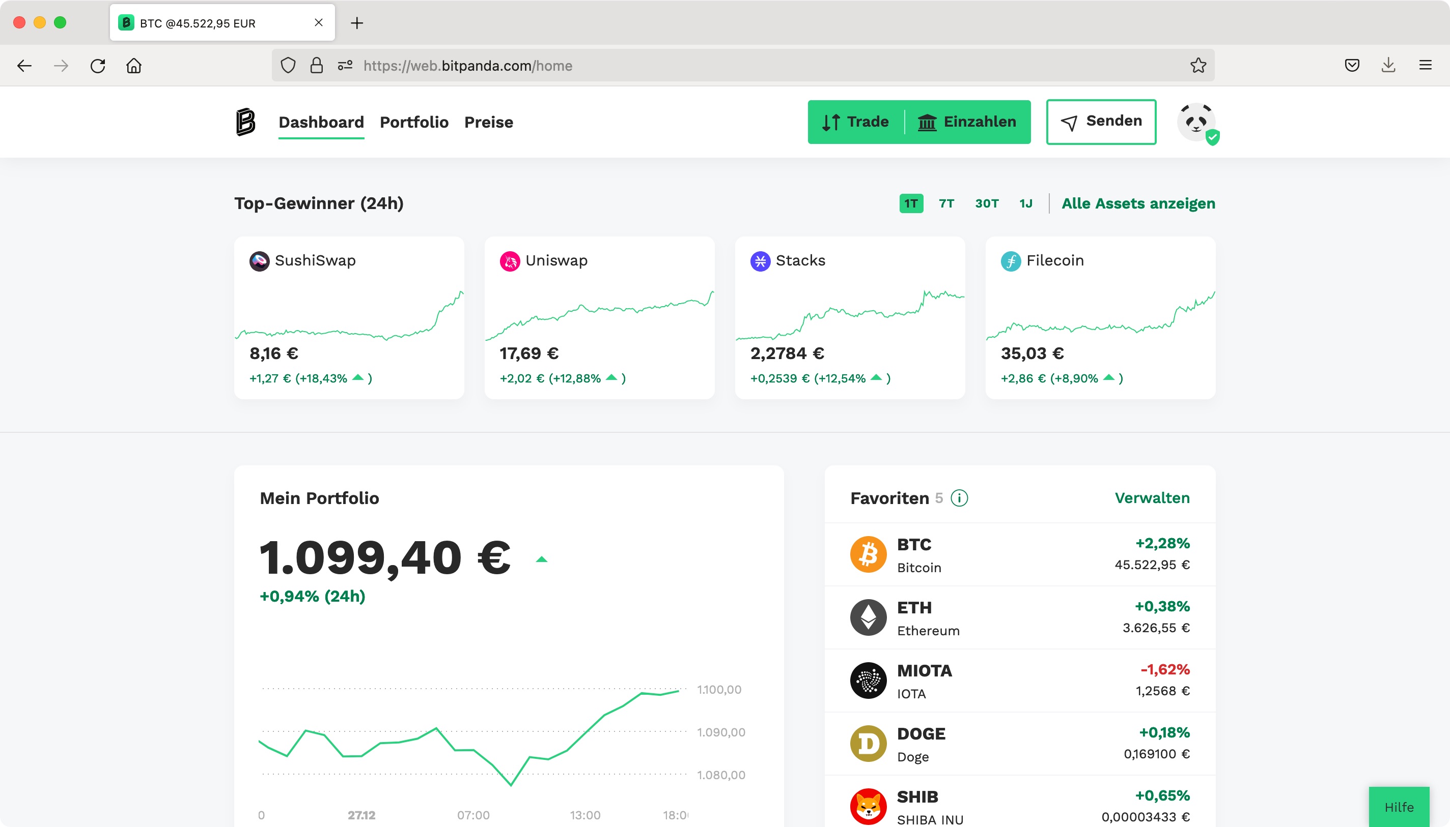 Wäre langweilig die Wallets nicht auch gleich zu befüllen – also Login in Bitpanda und Übertrag in ein Wallet. Vorab – das geht sehr einfach und man braucht nur ein wenig Geduld bis die Transaktion verbucht wurde. Logisch, Überweisungen dieser Art kosten Geld. Bitpanda nimmt hier 2,72 EUR.