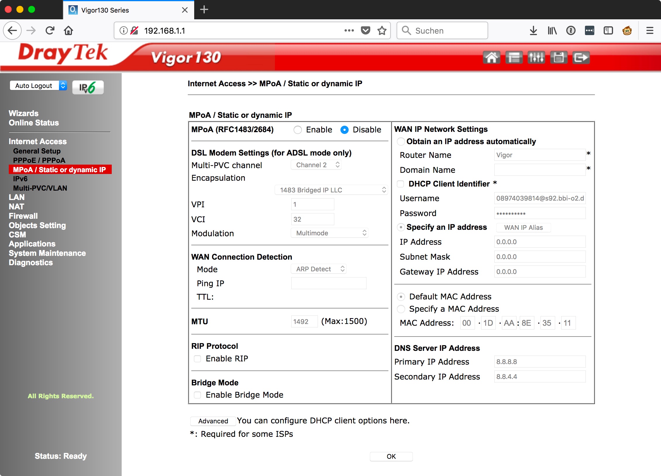 Vigor130 O2Online 3