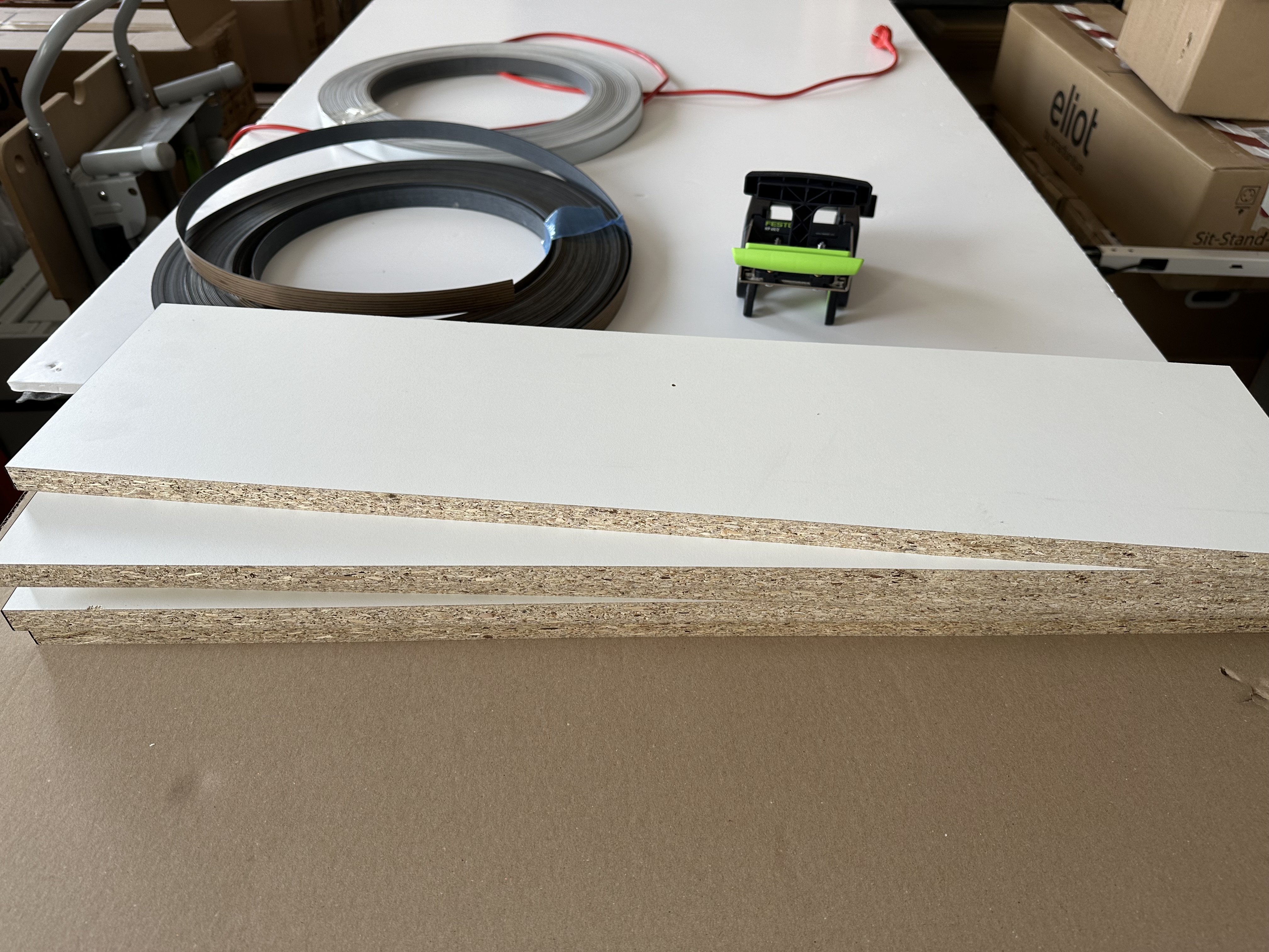 Wir bekommen bei Smartfurniture durch Transportschäden und Tischplatten-Upgrades immer mal wieder leicht defekte oder gebrauchte Tischplatten zurück. Dazu haben wir reichlich Prototypen und Messeplatten. Viel zu schade für den Wertstoffhof. Die Idee ist die Tischplatten in kleinere Platten zu sägen und dann als Regalbretter zu verkaufen. Kam vor knapp sechs Monaten über mich.