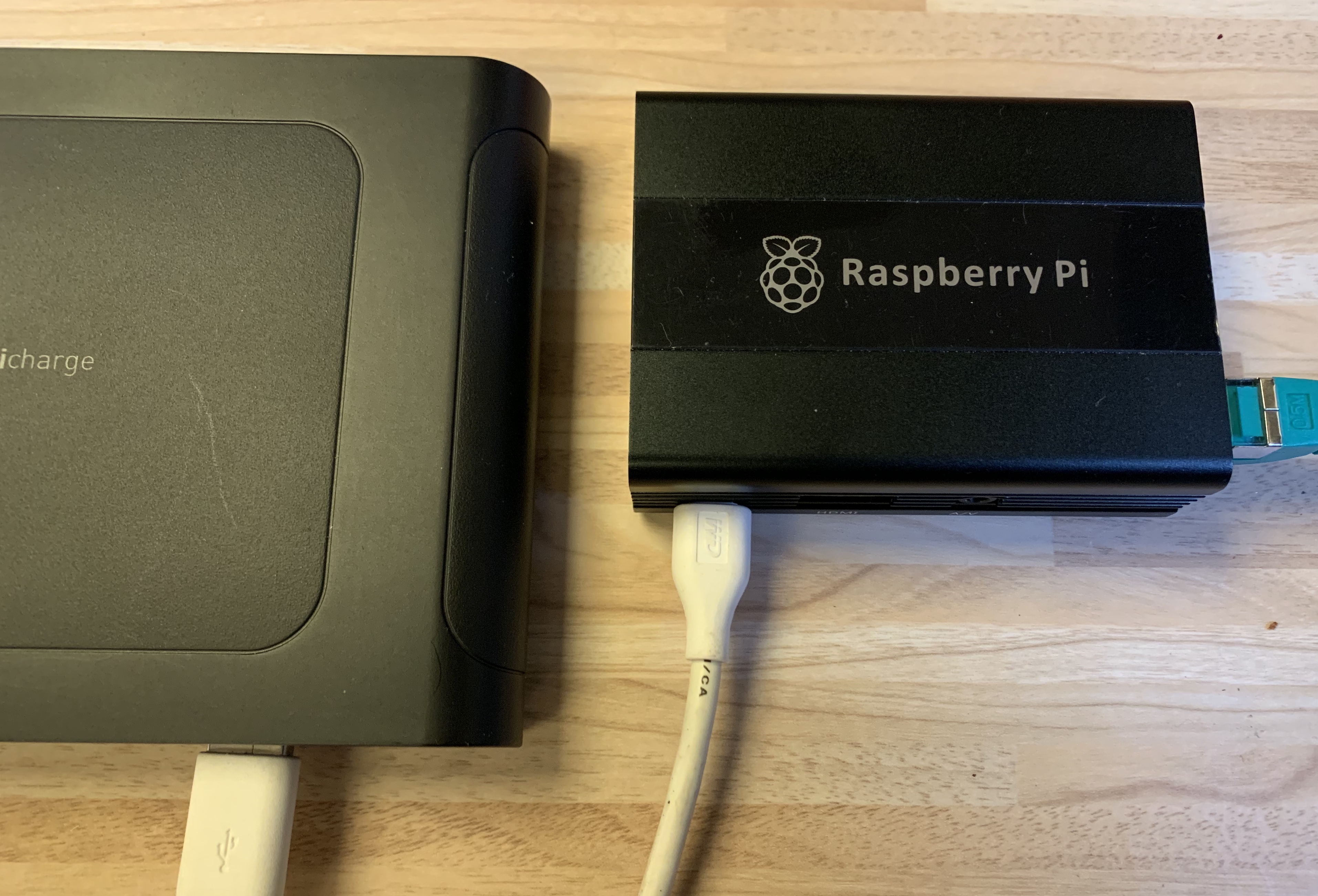 So sieht der Testaufbau in der Küche aus – mit dem Omnicharge Akkupack sollte das auch noch ein paar Stunden durchhalten.