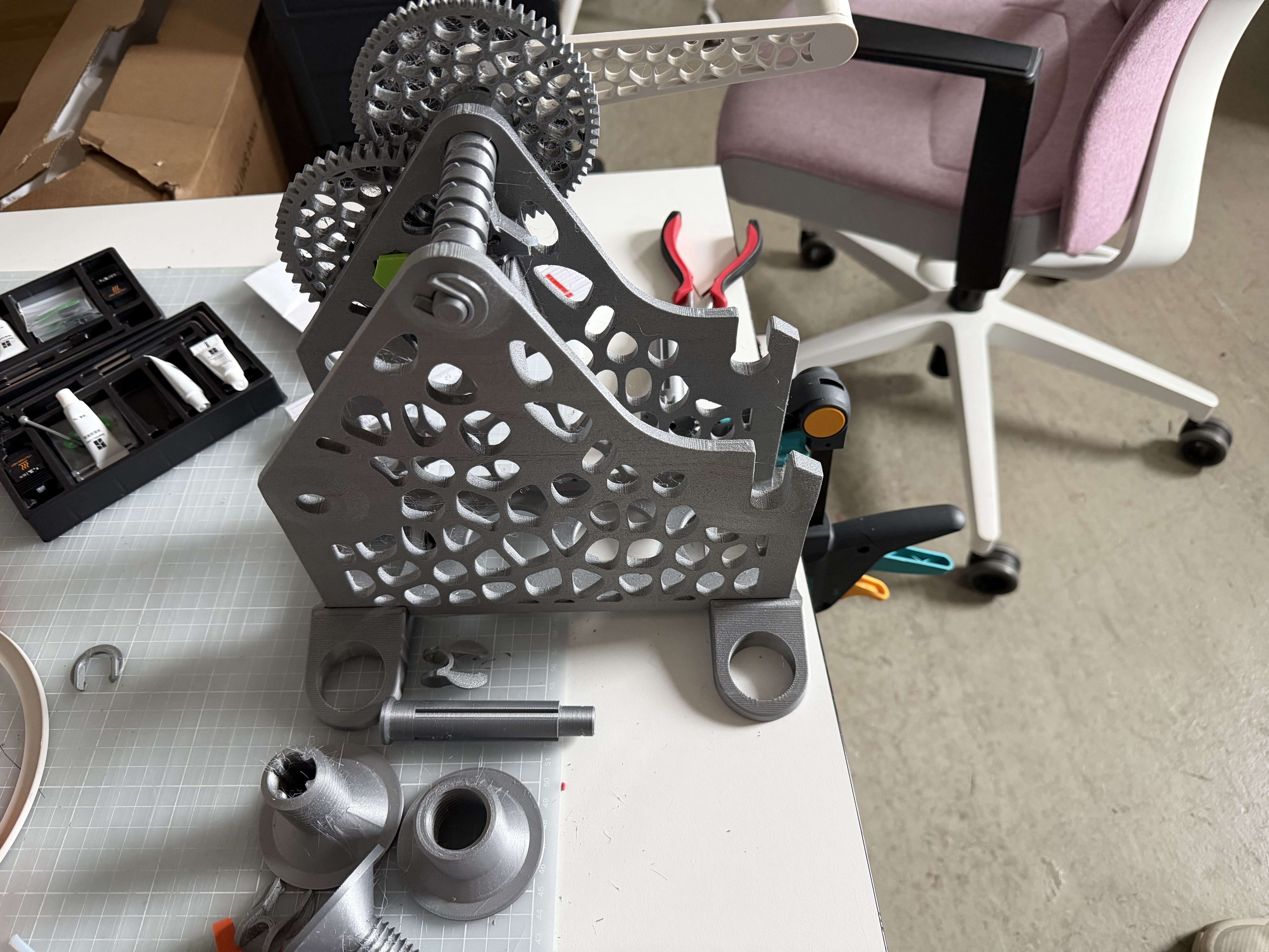 Wir drucken, drucken und drucken – dazwischen verkaufen wir auf eliotfurniture.com auch unsere fertigen Produkte. Die Komponenten werden gerade optimierter neu konstruiert.