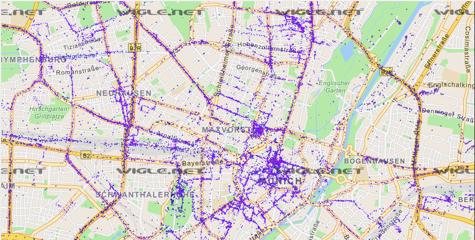 gesamte bekannte WLAN Netzwerke in WiGLE
